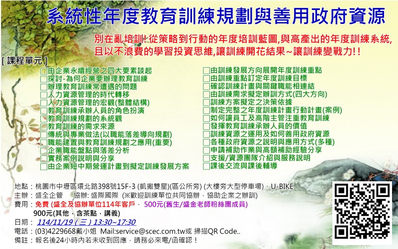 | A003 | [企業經營] | 願景經營與年度目標實作 | 14~16 | |